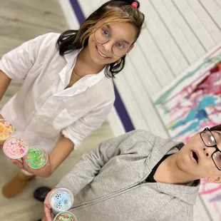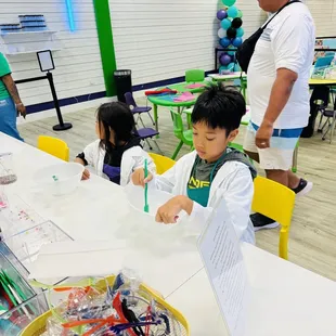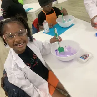 Amazing experience! Adults get to relax while the kids are taught how to make slime by the instructors. Instructors are knowledgeable, hands-on, and helpful while also letting the kids take their time and enjoy the process.