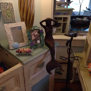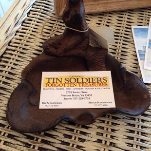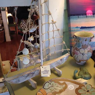 Tin Soldiers Forgotten Treasures is the cutest store! It's perfect for those going for that beach chic feel. They're very welcoming and helpful. The shop is full of fabulous finds and there's tons of room to walk around. I loved how it was spaced out. My husband and I bought a cute side table to go beside our couch at our apartment, a gurgle pot, and a cute seashell pillow for our couch. They'll paint a piece for you if you find a wood piece that you love elsewhere. I went here twice today just deciding on what to get and they're always getting new pieces in.They sell pieces by artists in the shop,, so you're bound to find something. There were tea towels, soaps, matted photos, and the list goes on. You could spend awhile just browsing and debating items.