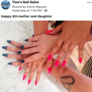 I treated My Other Mother and her daughter to a Mani-pedi last year for Christmas! The daughter had always had her toes done but never her fingers. Let's do them I insisted since I was paying, Give them the works!! Hands we did Powder Puff Pink on the nails with white tips. Very Elegant and sofisticated. And toes were done in Deep Burgundy with glitter. Perfect for the holidays. Now, today I just reserved another treatment for my Dear Friend who really NEEDS to relax and at Tina's they are really nice and professional and the Best and Most Reasonable in the Area!! Manicure in Powder Puff Pink with French tip in Gel for $40. And gel color on toes with a foot bath and muscle salt rub for $30!! So, for a cool $70 you are relaxed, rejuvenated and ready for your party, vacation or just at home enjoying your nails because they are PERFECT!! Book early!!!!! Tell Mr. Kenny Caleb sent you please! Thank you Caleb Eudy DC