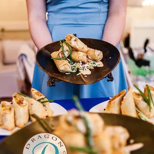 My family hired Traditions to cater their business's company Christmas party at Chesapeake Golf Club that was last week. Everything was beautifully decorated. There were Christmas trees, Christmas lights strung, and the tables were gorgeous with green and red linens and white chinaware. Along the wall was a beautiful display of hors d'oeuves like artichoke and spinach dip with crackers and pita points, cheese, and fruit. The dip was delicious!They had coffee, lemonade, tea for drink. The servers gave out the salad. It was lovely display of greens with cucumber and tomato. On the table were the boats of ranch or Italian vinaigrette. This also was delicious. On the far back wall was where they had the buffet style dinner. They had roasted potatoes, rice pilaf, and asparagus for the sides. The potatoes and asparagus were perfectly seasoned and cooked. I didn't feel the same for the rice. It was completely tasteless and left me disappointed. The main entrees were roasted sirloin with horseradish sauce and a pepper crusted salmon with mango cilantro. The sirloin was not really hot and also not seasoned well enough. The sauce was delicious though. The salmon was picturesque. It looked like it was out of a cooking magazine, and I wanted to love this so much buuuut my salmon was just a tad undercooked. I want to make this clear: everyone I talked to enjoyed their meal. I had someone tell me their salmon was over cooked. I had another loved their roast. And another dislike it as much as I did. There was a complete mix of opinion when it came to their food. Maybe it was just the menu selection that was chosen. Anyway, this place was great! I'd definitely come back again. The servers were great, the decor was lovely. Come check them out!