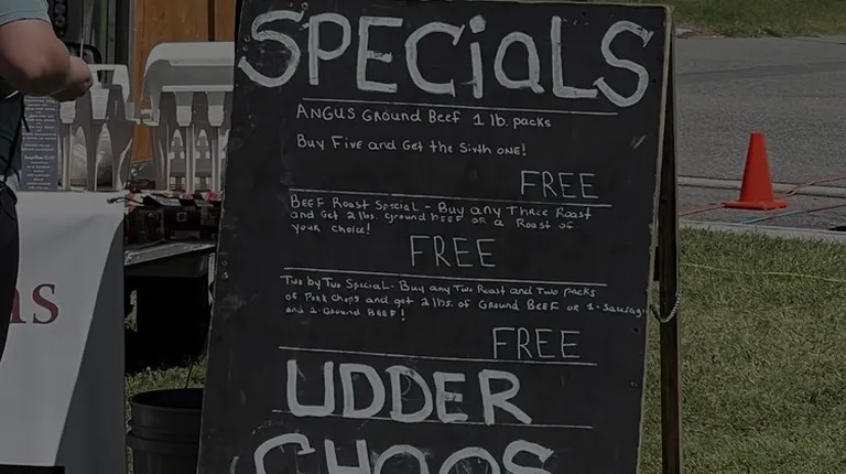 I found Udder Chaos, a family-owned farm, at a local farmers market, and I could see why they had a constant flow of patrons checking them out!They had a generous selection of items: steaks (ribeye, t-bone, porterhouse, NY strip, sirloin, filet mignon, hangar/flank, skirt/flatiron), beef heart/tongue/liver, marrow bones, oxtails, brisket, and short ribs; ground beef, beef patties, roast (chuck, sirloin, rump, and bottom round), London broil, tri-tip; pork (tenderloin, bacon, bone-in pork chops, St. Louis ribs, smoked ham hocks, and Boston butts); there were also smoked and regular sausages!I know that the next time, I'll bring a cooler so I can stock up on their oxtails and pick up some steaks!The staff here was super friendly and welcoming, and, if you're lucky, they have some samples for you to try (they had juicy sausages when we were there).Support this local farm!+friendly owners!+farm-raised meats+makes appearances at local farmers markets