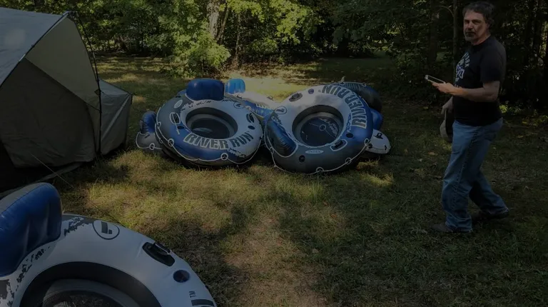 Tubing and gear and tent