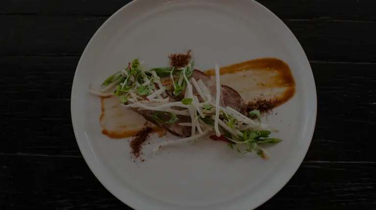 BRAISED PORK CHEEK TACO with Pickled Red Cabbage, Green Apple Salsa Verde, Pineapple, Queso Fresco