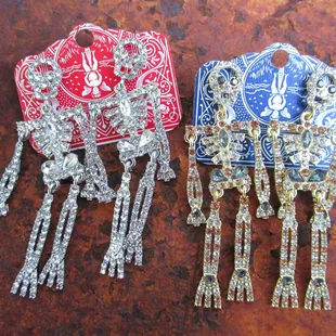 Phone, wallet and ID handsfree purse ( hangs from your neck) and rhinestone skellie earrings (Skellie moves!)