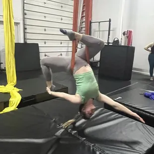 I've been here twice now - loved both times. This is something new and fun that I'm excited is here in Virginia beach. Who hasn't seen these awesome silks and aerial artists in Vegas or somewhere and wanted to try it out!?This is a space where you can do that, safely, and in a small group environment with a professional who can walk you through it slowly. They have several classes a week and an easy online schedule where you can read about the different levels, what to expect in each class, etc. You can sign up for classes, pay online, and sign the waiver before class even begins. You can also sign up for a membership monthly which has several packages you can do. I've had fun pushing my boundaries and learning new things. I love the aerial yoga class and plan to come back for that.Classes range from beginner to intermediate and advanced. They have some yoga upstairs, some aerial yoga, some harder classes as you progress, and some for younger teens to do with parents also.It's all good. Highly recommend.