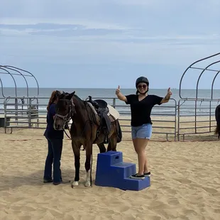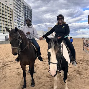 First time horseback riding on the beach and it was so much fun! We stayed the weekend at the beach for a bachelorette party (group of 8 ladies). The typical party size for horseback riding is 8 if you need 1 more I would advise reaching out to the owner Chase to see if he can accommodate you. Chase and his team were awesome and friendly! I corresponded with Chase a few times before our actual day and he always got back to me in a timely manner. The costs is $60 per for a 30 minute tour and $80 per person for a 60 minute tour. The ride starts on 26th street where they are located and you head to the pier. Each of the horses have names, my horse was Redbull. Redbull was a very good horse. Chase and his team advise you how to guide your horse (pulling left, right, or up) and tell you about their personalities. Some of the other horses I remember are Ginger and Roscoe. Cheyenne was our guide on the tour. Overall it was a great experience! The youngest age to ride is 6 so if you are looking for something fun to do be sure to check out VIrginia Beach Horseback riding! I will definitely return with my family.Funny story To add my horse had an itch at the end of the ride I have never seen a horse roll around to scratch it was too cute and funny to see the bourse rolling in the sand.
