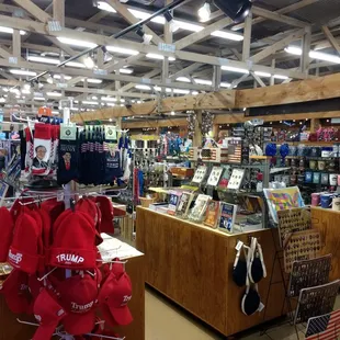 They didn't have a thing I didn't need.Lots of knives in the back to keep the men interested. Lots of tshirts, kid tourist things and fudge. Some jewelry, cowboy hats and purses.