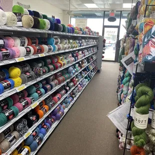 Yarn and More is an absolutely FANTASTIC store for everyone who loves to knit and crochet! The people working there are incredibly sweet and welcoming as soon as you come in and you're greeted to a bunch of lovely looking and smelling soaps.There are many aisles of yarns in various weights, materials, and prices to fit the budget of anyone. I saw some nice yarn for $40+ a skein as well as small packages of yarn that were still nice and soft for only $3. There's plenty of hooks and needles for sale, amigurumi (kits AND just parts, like the eyes and stuffing), patterns, buttons, thread, even kits for knitting socks.I went here twice, the first time to get a skein of yarn to make a shawl and then also to get a button and an impulsive mini-skein and then the next day I was back because I ran out of the first skein while making the shawl and realized I needed a 2nd one, where I ended up impulse buying another mini-skein and a button because the prices and quality and overall charm were just too good.I was very excited to hear they had a website and now that I'm back home in Philly will certainly be ordering from in the future!