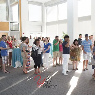 I had a great time at the event! This gave my wife and I an opportunity to visit a place that we hadn't been before and see some interesting animals. First and foremost, the new swag is great. In New England, we don't often use 'coozies' and when we moved to Virginia we marveled at the locals who would bring their own to the bar. We get it now. It's pretty darn hot. What I enjoy is that this gives me an opportunity to enjoy a cold beverage at a bar and subtly hint "I'M WATCHING YOU!" I kid. I kid.The tanks at the aquarium were fun to watch, but what I really enjoyed was after I spent about 15 minutes trying to molest the rays, we ventured to the crocodiles and mammals section. We bumped into a kind, older gentleman named Charles. I'll probably do my own review for the aquarium based on his hospitality. Knowing that there were only minutes left to enjoy the exhibits, he still stopped at every point of interest and rattled off facts about the creatures to give us the "real" experience of a tour. His excitement fed half of mine. Plus: Sea horses. I love 'em.Aside from the chocolate blueberries, I couldn't eat any of the other offerings, but my wife said the pork and beef hors d'oeuvres were surprisingly delicious. So thank you Sodexo!It was nice to meet and network with new people. All involved (staff and Yelpers) were a pleasure!Thank you again!