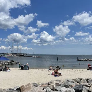 This is an adorable beach in a super cute town with free parking. What more could you want? Why did no one tell us that it is known for JELLYFISH. They were everywhere and my granddaughter got stung twice. I was wondering why it wasn't more crowded on a 100 degree summer day. I thought is was a fluke untilI got home and everyone said oh no don't swim at Yorktown it's full of Jellys.
