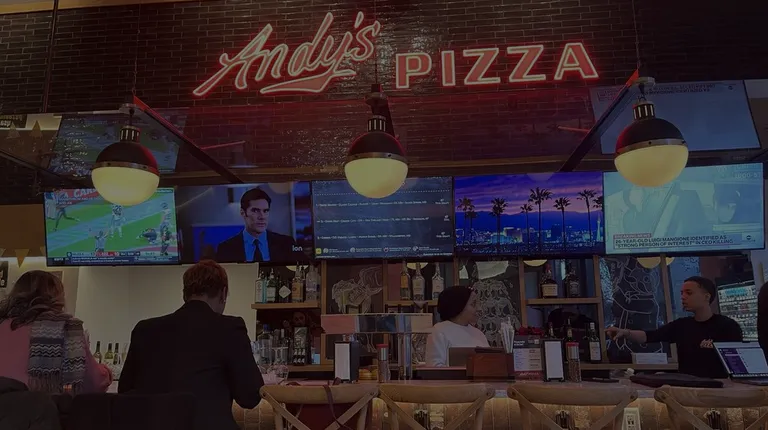 I've been dreaming about this pizza since I left. The thin crust, the crunch, the flavors individually and collaboratively - I have nothing negative to say. It's best pizza I've ever had. The establishment is small, but flows so well. The lines seem long, but they go very quickly. I appreciate that they have a limited menu, which definitely assists in their assembly line.Andy's is small, but they make the most of the space. They have quite a bit of seating inside and some outside. I believe they have a bar area as well.I'll be back as soon as possible!
