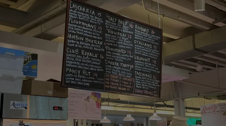 Bar Boheme's sandwiches are delicious and a fair price for the size. Although they cost $15-$18, they are easily two servings. I tried the Tacchino and Reuben recently. The Tacchino was the better and more interesting sandwich, thanks to the variety of ingredients. It was great! The reuben was good but a pretty standard reuben, nothing special. I visited on a Tuesday early evening and the sandwiches were ready quickly, in only a few minutes. Union Market was not too busy.This is a sandwich counter with a few seats, so it's very barebones. Beyond the main sandwiches, the shop has a few other menus and items on offer. They have happy hour M-F 4-6 PM with $7-$8 drinks. Signs advertise $5 mimosas all day and $12 bavarian pretzels. There's a "larder" menu of various packaged food items.My two suggestions for the owner: post a photo or two to help people understand the size of your sandwiches, so they are less likely to balk at the menu price; consolidate your menus a bit so there aren't ~5 different menu signs.