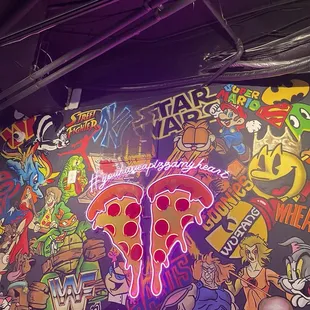 Oh MY! This place just opened up on the extremely busy street of Clarendon Boulevard. Let me just tell you this -- if I lived closer I very well might become a regular! Apparently it was a pizza place in its previous iteration, but this seems to be quite an upgrade. As you walk up, there is plenty of outdoor seating, and the doors are wide open, welcoming you in.The first thing I observed was the retro wall -- lots of 80s and 90s references, many which were video games. There were several high top tables, a delicious display of pizza to the left, and a bar to the right. I was the only person in there at the time, so I made myself comfortable at the bar and looked at the menu. Excellent specials, and a rather curious looking flight. Two of the items in the flight were frozen, and one had an unfamiliar name. The bartender was kind enough to let me try before ordering... it was a frozen tequila cocktail basically -- nothing like a margarita though. I opted for the flight, a slice of veggie pizza, and a slice of Sicilian. The drinks were wonderful, hands down. From the frose to the aperol spritz, it was a delightful array of beverages. The pizza is bomb. They've got a great crust, delicious tomato sauce and yummy cheese. The veggies were just a bonus. All the while, the music was a vibe while I took in the retro decor. What an excellent addition to the area. I wish I was closer so I could go more!