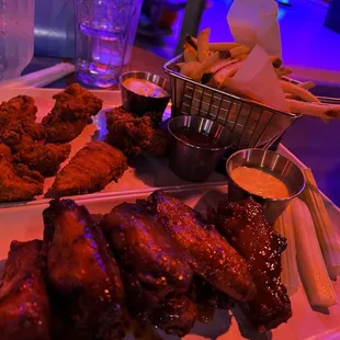 Thought the food here was pretty decent especially for bowling alley food. I would compare it to decent bar food. Service wasn't super great since everything is done through an app. So could see that being a problem if you needed assistance. Also, I did notice our plates were still on the table the entire time we were playing games. Overall though fun times here and don't think you'd be let down by food if you eat here unless you are expecting a steak dinner at a bowling alley
