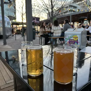 One of the funnest atmosphere spots in DC. This place is great for a day outing with friends or family. It's near the water, everything is outside, and it all made for a great experience. The drinks and service were top notch. We had our two year old with us and the staff was so helpful with everything. We just had a couple of drinks and the pretzel. While the pretzel could have been warmer, the beer cheese and dill mustard that came with it were the best soft pretzel accompaniments I have ever had. I'm not sure what they put in the beer cheese, but it has a really different flavor to it that was delicious. Wish we would have had time to try more because all the food we saw pass by looked great.Between the food, drinks, atmosphere, and workers, this place is a must stop if in the area.