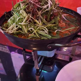 A relatively new Korean pocha-like restaurant for drinks and late-night food. The vibes include dim lighting and loud old-school Korean music. They give you a bag of Cheetos when you order beer. We ordered the pork backbone soup ($29.99). We thought the portion was good but we just didn't love it. The soup was very red, but it was not very spicy. We thought the tables were pretty close together. The patrons next to us went outside to smoke a few times and we were continually whiffing the smell of cigarette smoke.