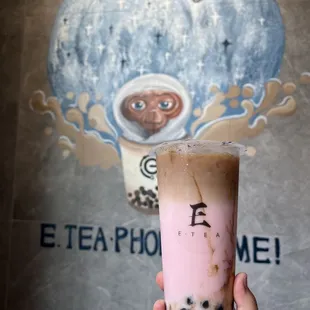 Another impromptu stop while leaving The wharf. We wanted coffee but for some reason decided to stop here instead of backtracking to the coffee shop.... Ironically, this is mostly a tea place and we wanted a hot coffee drink! But I should have known better than to order a hot drink with oat milk from a tea place.Everyone place their own orders using the self-service kiosk. They had some very cool and pretty looking drinks and desserts. Ultimately, I decided to order a coffee drink......I chose the hot tiramisu oat latte. What was I thinking!??? I watched the employee make the beverage.. he used powdered oat (milk??), a few drips of watered down coffee and a few other drips and drops of other things. And voila! An awful hot powdery beverage!! Customer service was pretty much non-existent. As soon as we walked in, there was no greeting of any sort. No one took orders at the counter...it was strictly orders place at the kiosk. Even when handing the orders, there was no "enjoy your beverage!"I loved the E.T. theme, wall art and cup decoration.Would I return? No most likely not.