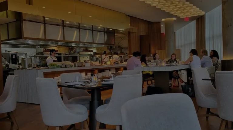 Located in The Conrad Hotel, this elegant dining experience met my expectations. Service was impeccable- from the host stand to all the servers, I expected nothing less.The crabcake appetizer was filled with lump crab meat, the steak was cooked to perfection, the rockfish over succotash was a pure delight. The crispy skin on the rockfish was complimented by succotash which consisted of baby corn, sweet peas, and no lima beans. Vegan ice cream and flourless chocolate cake finished off the meal. There's selection of bourbon as well as wines is some of the best in the city . City views abound with the floor to ceiling windows.