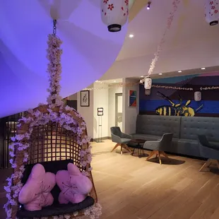 After tea at Hillwood Estate, my friends and I stopped by the Cherry Blossom Festival Pop-up Bar at Fiavola Restaurant inside The Bethesdan. It will be there until 4/14. The restaurant was decorated with cherry blossom garlands and cherry petal pillows. The service was better at the bar than the table. For drinks, we enjoyed the Cherry Blossom inspired cocktails, including Japanese Slipper and Blossom 75, and Pinot Grigios. For food, we enjoyed the Slider Trio, Poutine, and Suntory Whisky Glazed Chicken Wings. The Slider Trio consisted of a burger, crabcake, and fried chicken thigh slider. Among the three sliders, my fiance enjoyed the crabcake the most. I liked how the chicken wings were sweet and tangy and came with carrots and celery served with ranch dipping sauce. It was a bit messy to eat, but that was expected.