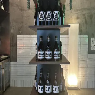 a display of liquor bottles in a liquor shop