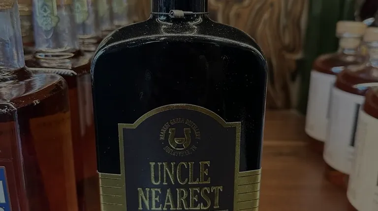 a shelf of liquor bottles in a store