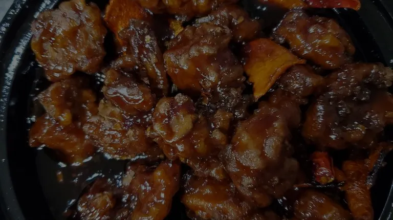 $12.95The general's favorite dish made with tender chunks of chicken marinated in a hot sauce. Substitute white meat for an additional charge. Hot and spicy.