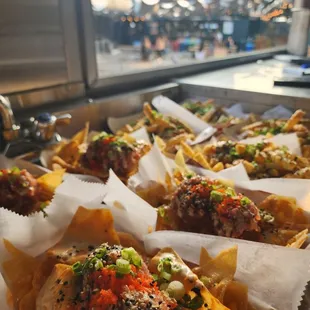 Calamansi wings plate; Nakakaloka fries w/kalua pork.