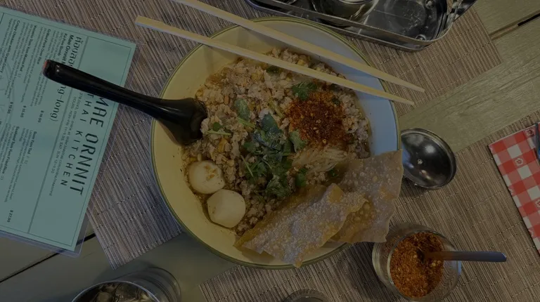We had a great experience at Mae Ornnit! The service was excellent, and we appreciated that the interior was still decorated for Valentine's Day--it added a nice touch, especially since many were still celebrating a little late. Kudos to the restaurant for allowing the latecomers to enjoy the holiday spirit!We ordered the fried rice, grilled pork, and volcano noodles to share family-style. The food was good overall, with the grilled pork being the standout dish--perfectly cooked and full of flavor. The volcano noodles were definitely more about the visuals, but we'd recommend not filling them with veggies at the bottom. The yogurt drink was also a nice surprise and really enjoyable.Overall, a solid dining experience, and we'd definitely come back to try more dishes!