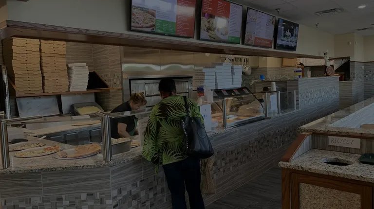 Inside of pizza spot.