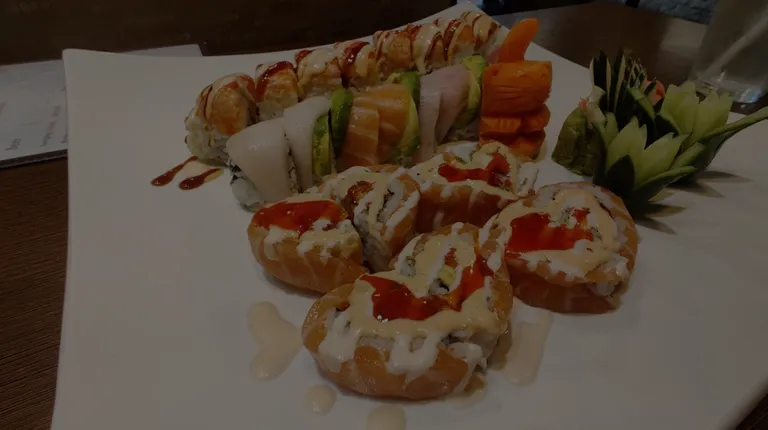The sushi chef is a real artist, the plates come garnished with figurines carved from carrots and cucumbers, which takes a lot of skill. I love this place, a true gem. It's quiet, great prices and a nice family-owned restaurant. My favorite are the spicy yellowtail and spicy tuna rolls.