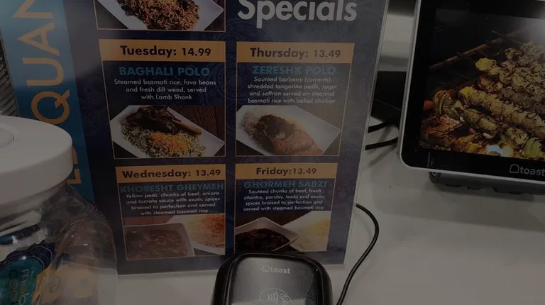 Very clean, spacious and welcoming. Menu is very classic with an array of salads, kabobs and Persian specials. I ordered the salmon kabob dinner. It has a huge mound of fluffy long grain rice, top with perfectly cooked salmon cubes. They were juicy on the inside with a nice char on the outside. The platter also has grilled onions. The side salad that came with this dish was very fresh. The greens were crunchy and topped with tomatoes, hot pepper, feta cubes and beets. Prices are reasonable, service was fast.