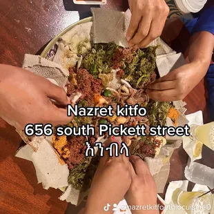 Kurt,freshly cut lamb tibs, tender beef tibs, and Nazret Kitfo special.