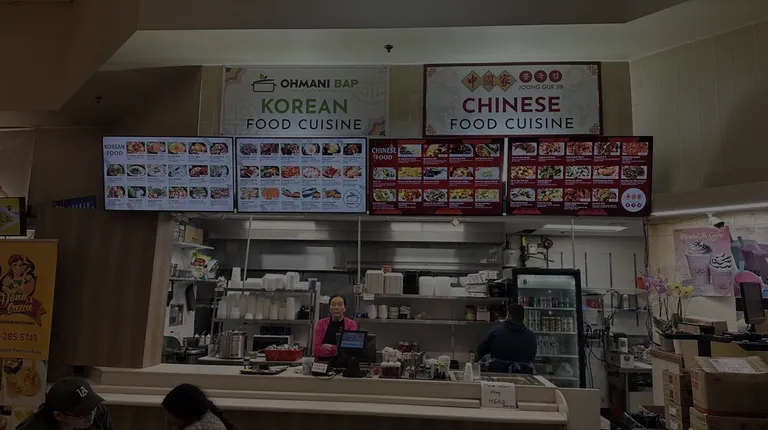 Ohmani Bap & Joong Guk Jib is located as part of the food court inside Global Food.This Korean/Chinese-Korean eatery offers some simple, homestyle eats, ranging from bulgogi, tteokbokki, dduk guk, daegu maeoon tang, jajangmyun, tangsooyook, etc.We came here for an early dinner, and we tried:+the Gan Jja Jang - aka, #3; this had a savory jjajang sauce that was smokey but very yummy; definitely different and a more flavorful sauce we've had in the DC metro area! Noodles were a little overcooked, but very generous in portions+Kimchi Jeon - aka, #31; this was extremely large, had a slight chew, and comes with a sweeter soy sauce; I prefer the regular soy sauce/vinegar/gochugaru mixture; this was filled with tons of kimchi and scallions and was a nice app to share+the Galbi Dolsot Bibimbap - aka, #24; came with lots of rice, veggies, and good chunks of galbi; rice was a little more wet than I would like; veggies were fresh, and galbi had some fat and cartilage, which the hubs gladly took and enjoyed; the bibim sauce is spicy, which I was happy about, as usually they're more on the sweeter end+and, a Tteok Manduguk - aka, #9; a large generous bowl with tons of sliced rice cake and dumplings; this was soothing, and perfect for a cold day or when you're feeling slightly under the weatherThe staff are super friendly and kind here!There are plenty of tables that are shared between patrons of the different eateries; slightly tight, but still manageable.Would love to try the stews and the kimbops on the next visit!Plenty of parking in the large lot.+simple, homecooked Korean/Chinese-Korean eats+friendly service+located inside Global Food+plenty of parking