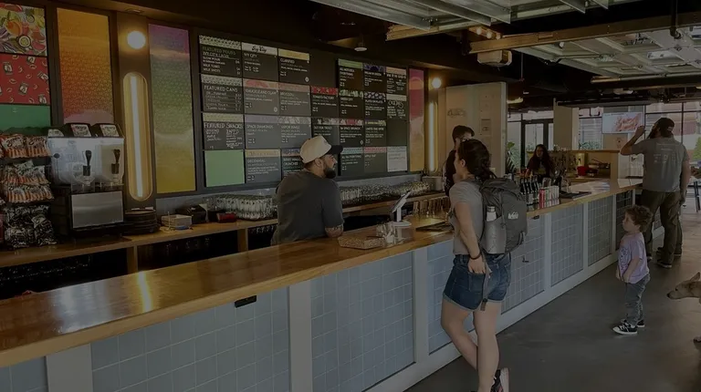 Outstanding beer place.A vast selection of beers with a nod to hazy IPAs.I asked if they had any West Coast style IPAs - and received a can of Green Flowers - it was excellent.Lots of seating in and out, hip building, beers to-go and restrooms worthy of a brewery (lots of opportunities to offload beer, not like those dumb places that have 1-2 restrooms for beer drinking - and peeing - patrons.)Cool selection of merch too - rep the brand you love to drink!I think you can bring in your own food, lots of tables to set up and enjoy.The neighborhood is a bit odd and parking is on the street (some weird drug buy happening as I was leaving, so now you know.)Overall, I loved the place.5 stars