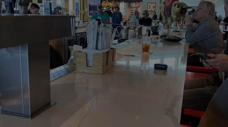 Came in before my flight, and crawled over to an empty seat at the bar. Bartender couldn't deliver on my first choice, as the Sapporo was nothing but foam. The D&B Vienna Lager was ok, so went with a tall at $12.50. Ordered the orange chicken with brown rice. Service was moderately fast while the kitchen staff just yelled like most teenagers do. Kinda killed the atmosphere, but for a $22.50 dish of chicken, it was enough for two. I couldn't finish it, and it was overly spicy... and I'm not a whimp on "hot food." Kinda sorry I didn't get 1/2 boxed to go, but whatever. With tax & tip, out at $40.This is an ok eatery at DCA, but I can't say I was impressed either. Solid food, but overly spicy imho. Decent beer. Airport atmosphere. Service - ok, but not impressed. Definitely becoming more of a chain type restaurant, and the quality is slipping from 10 years ago.