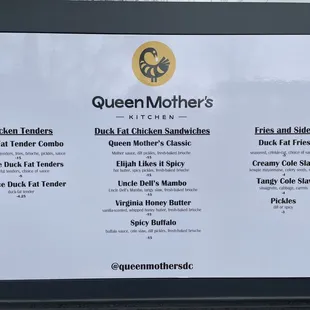 If you're in the mood for an elevated Chick-fil-A chicken sandwich then Queen Mother's Kitchen is your place! I ordered the Queen Mother's Classic Chicken Sandwich and Duck Fat Fries to try their classic items. I will say it was pretty pricey at $20 for this meal but the food was hot, plus the chicken was juicy and not dry at all. All of this made it worth every penny - definitely check this place out!
