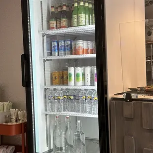Vegetarian pizza and seltzer