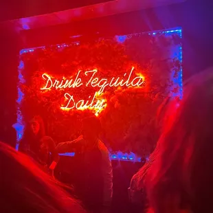a bar with red and blue lights