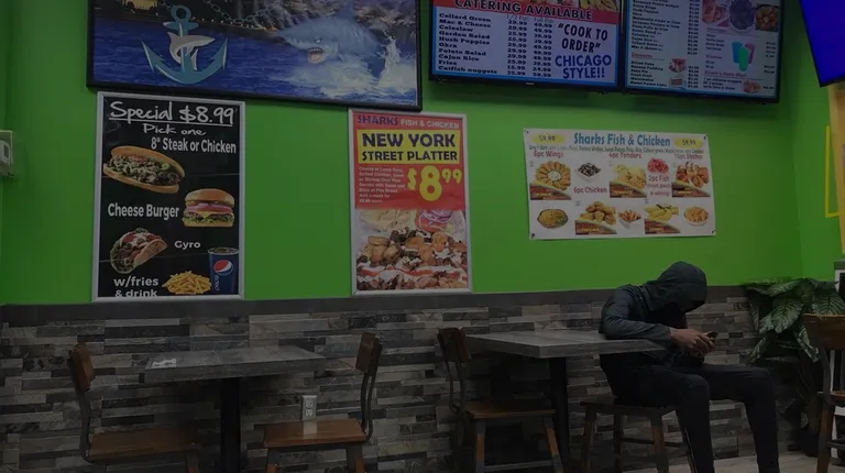 Big menu, busy place, that moves people along well. If you need a late night meal, Sharks is pretty good. The choice is there. I like the desserts which have been ahead of the meals in quality. The fried foods have been basic. The shrimp was over fried. And the fries served soaked in oil. Cocktail sauce wasn't very good, and not enough given. Will be back. Convenience and choice matter a lot. Plus, I've always found the people,behind the counter to be personable and hard working.