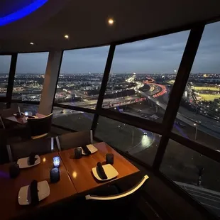 The views of the city are awesome! But the service was terrible! Took over an hour to get our food, it was cold and the waiter had the personality of a rock!!! So disappointed!!!