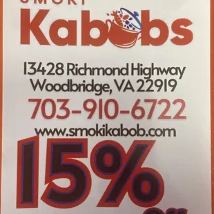 SMOKI Kabobs has another location out in Chantilly, but we noticed that this place seemed to have opened recently in the Woodbridge area.We came here for lunch, and, while it was about an hour past their opening time and their 'open' sign was on, the door was still locked. We found out from one of the owners that they had a large party/event the evening before, so they were still trying to recover from this; it would have been nice if there was a sign or something...The menu offers various apps, salads, sandwiches, lunch specials (limited in terms of choice of protein), kabobs, entrees, and vegetarian options.We wanted to try their lamb chops, but they were out of them - super disappointing. Instead, we tried their Combo of Chicken & Beef - at first, they stated that they only had ground (which was not preferred), but then they stated that they had the steak version available, which we opted for. This came with Kabuli Pulao rice, with a small cup of chickpeas. They didn't have fresh bread, or bread in general, so they stated that they could substitute by giving more rice or a side salad; we went for the rice.The kabobs smelled great, as they were grilled over charcoal - however, I wasn't a fan of the chicken, as it was just too 'soft' and it was more on the bland side; the beef was better with the sauce that was served.The rice was more on the 'wet' side, and there were a lack of raisins (my favorite part), which was a letdown.The chickpeas were very tomato-forward and was not good; we just weren't fans.In addition, all the items were not temperature hot, but more lukewarm - I couldn't help but think we just had their leftovers from the previous night's event, haphazardly heated up.Staff were friendly, and carry-outs seem to be popular.The place had ample seating, and, since it's located in a large plaza, there's also plenty of parking.Glad we were able to try this place out, but not sure if we'd go out of our way to return.+unavailable menu items+opening times can vary+plenty of parking