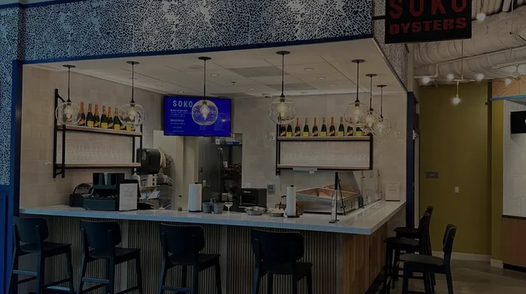 Solaire Social, Silver Spring's first food hall, officially opened to the general public today following a soft launch for family and friends yesterday.The staff were still in the process of setting up when I arrived at the advertised opening time of 11am and some of the food stations were vacant. Although I didn't sample any food during this visit, I look forward to doing so in the future.Food options include Fire Pit Brazilian Barbecue, Just Chicken, Kabab 2 Go, Kati Roll Wala, Shuga x Ice, Mana Sushi, Pau & Sophia's Thai Kitchen, Soko Oyster, and a full bar.The food hall has ample seating indoors and a few outdoor seats.I wish this food hall success in this location!