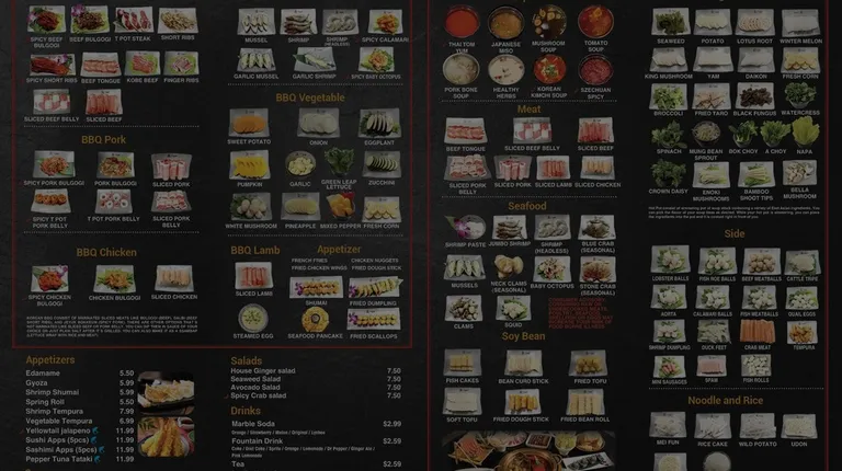 Came here tonight for the first time since they opened this location. We had been to the gambrills location and wanted to try this place out. There are 3 options for all you can eat: sushi, hotpot, and bbq. You get 1 choice for the entire table. All options come with the smaller appetizer section, but each of the options has specific menus on the dinner menu that it encompasses. We chose bbq and enjoyed spicy pork belly, beef bulgolgi, boneless pork ribs, and t pot spare ribs. We loved the marinades and the sides/dessert bar. Make sure you use the iPad to keep the meats coming to your table! We will def be back!Jake n kev