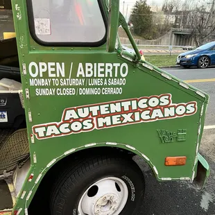 Delicious food truck off the side of the road that's open Mondays through Saturday serving great options.Their tacos are ~$3.50 each and they only accept cash. Note there are no vegetarian options.While one can take them to go, it's also possible to eat them there. For a full meal, I'd recommend having at least 3 and their green salsa is delicious with radish and cucumber toppings as well!The staff are incredibly friendly and kind! I highly recommend checking them out!