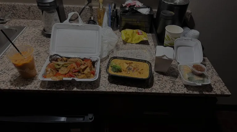 Food was very well done. Ordered green curry , red curry, Eggplant Chicken , Drunken Noodles and BasilFried rice. Food came very quickly. Being Monday night we were then only ones. Usually the crew is very friendly, but today it seemed like rushed and hurried. They were on us to order and pack and wipe the table.Felt very hurried and not comfortable at all.Lesser learned for us... don't go in a Monday !!