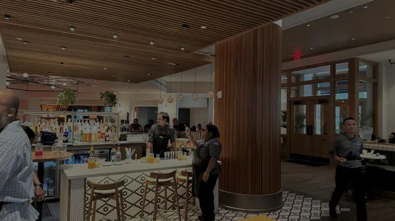 This is niceeeeee in my Tiffany Haddish voice!!Street and garage parking nearby.. entrance is on the side of the hotel with blue awnings. Cute swanky decor, great bartenders. We attended the pizza and cocktail making class. The environment was great the pizza instructor was funny and personable! The cocktail portion was ok they had rail liquor and the mixes were mediocre... however I'd definitely go back as it was a good time and the pizza soooo good very yummy.
