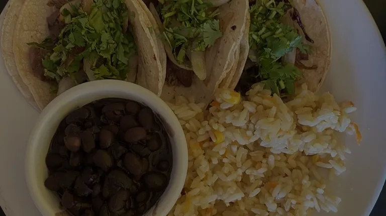 Tacos con side de aroz y frijoles