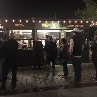 We arrived extremely at the Wharf for a dinner reservation so we decided to stop at Union Pie to order the white pizza to share as a pre-dinner snack and I'm glad we did. It was hot, fresh & delicious. It was big enough for three of us to share as a quick snack. Be alert that there a lot of pigeons hanging around there so watch where you sit and cover your food.