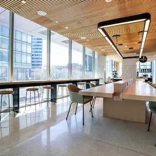 Once the Assembly Food Hall is a rebranded food hall called Upside On Moore. Above the Rosslyn Metro, they offer free parking after 6 p.m. on weekdays even if you park before 6 p.m. Otherwise, find it through the glass doors right outside of the Rosslyn Metro exit. It's on the second floor with a rooftop terrace, lots of seating, bar seating, free wifi, murals, and outlets. It's a perfect place to work. The food options are superb. There's Lightning Coffee with a Spanish latte made with sweetened condensed milk. There's Ghostburger, Stellina Pizzeria, Laoban Dumplings, and more. It's open Monday-Friday from 7 a.m. to 9 p.m. with happy hour from 3-5 p.m.