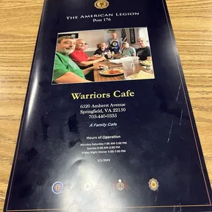 @ American Legion Post 176, Warrior Cafe6520 Amherst Ave, Springfield, VA 22150Keep in mind the Warrior Closes at 2:30 PM on weekends, so check the schedule or call ahead.There's usually lots of open tables to accomodate groups and families. The staff are always friendly and quick to bring the pot of coffee.We've usually gone for breakfast and burgers which are always good. Onion rings are always crisp and Susan has never had a bad burger. It's rare that I get over there for lunch, but have found anything with gravy is good!VIDEO:https://www.youtube.com/watch?v=pXsUTwFwPAo